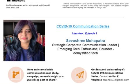The 30th edition of Intraskope’s Spotlight on Internal Communication Series features Arathi Biradar of Itelligence India Software Solutions. Arathi builds a case for aligning staff to drive corporate reputation. She believes strongly that internal communication is a key influencer in improving brand image.